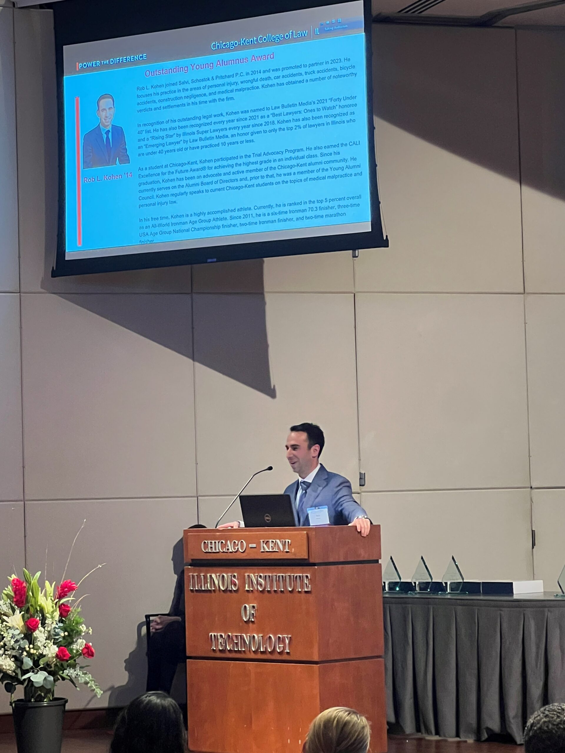 Each year, the law school honors an alum who graduated from Chicago-Kent within the past 10 years and has made a significant financial or volunteer contribution to the law school, or who has made an outstanding contribution to the practice of law, the judiciary, public service, business, or the media. This year, Salvi, Schostok & Pritchard is proud to announce Rob L. Kohen was chosen to receive the honor.